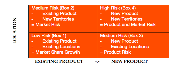 The great thing about growing your market share or your geographical market presence (ie. selling the same products and services to more customers in existing or new territories – boxes 1 and 2 above), is that executed properly, those customers can quickly become core business.